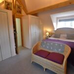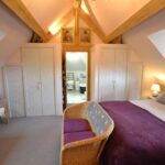 Bedroom four has a window to the side, a vaulted ceiling and a built-in wardrobe fitment.