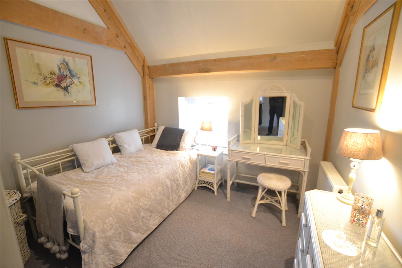 Bedroom two is also a good size double bedroom having windows overlooking gardens to the rear, a vaulted ceiling and twin built-in wardrobe fitments.