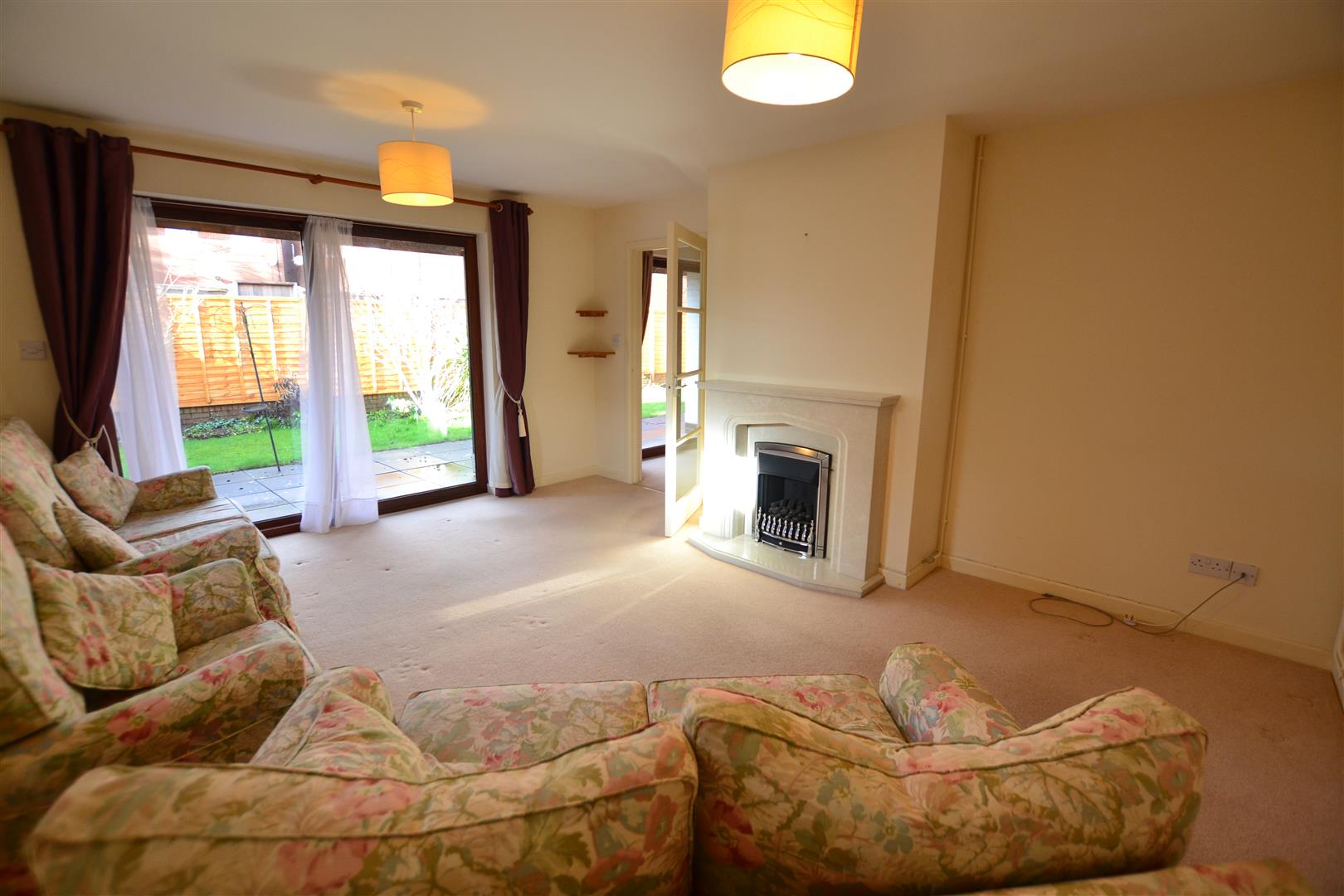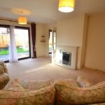 From the kitchen/dining room a glazed panelled door opens into the lounge. The good size is light and airy lounge enjoys a double aspect of double glazed windows to side and rear. There is also a patio door giving access to gardens, and a feature fireplace with a gas living flame and coal effect fire standing on a raised hearth with fire surround and mantle shelf over.