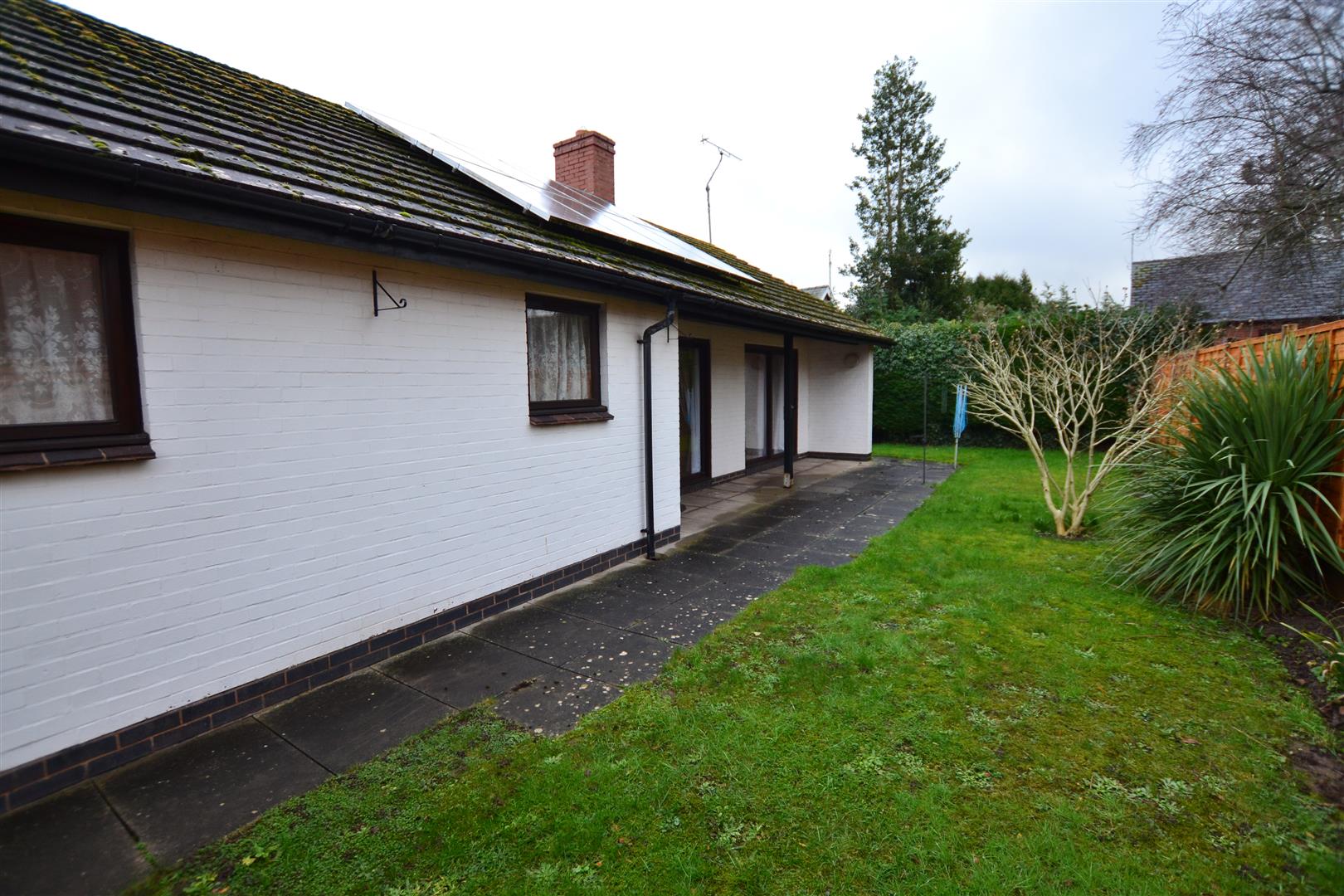 A pathway leads along the side to a patio garden with a veranda over and lighting. The gardens to the side are laid to lawn with a shrub border and the lawn gardens continue to the rear. A slab pathway gives access around to the other side where there is a further sheltered area with lighting.