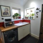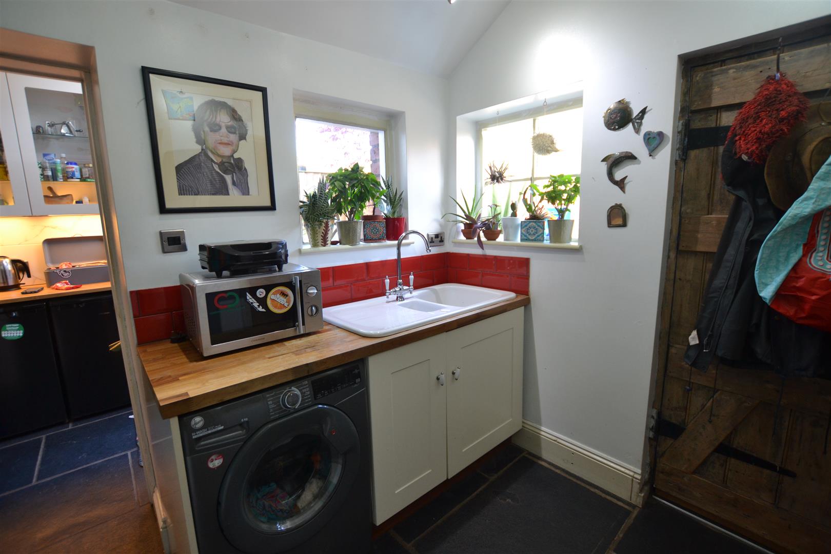From the kitchen a door opens into a utility room. The good size utility room has a wooden working surface with a sink unit, cupboards under, planned space and plumbing for a washing machine, windows to side and rear, tiled flooring and a door opening out to the rear garden.