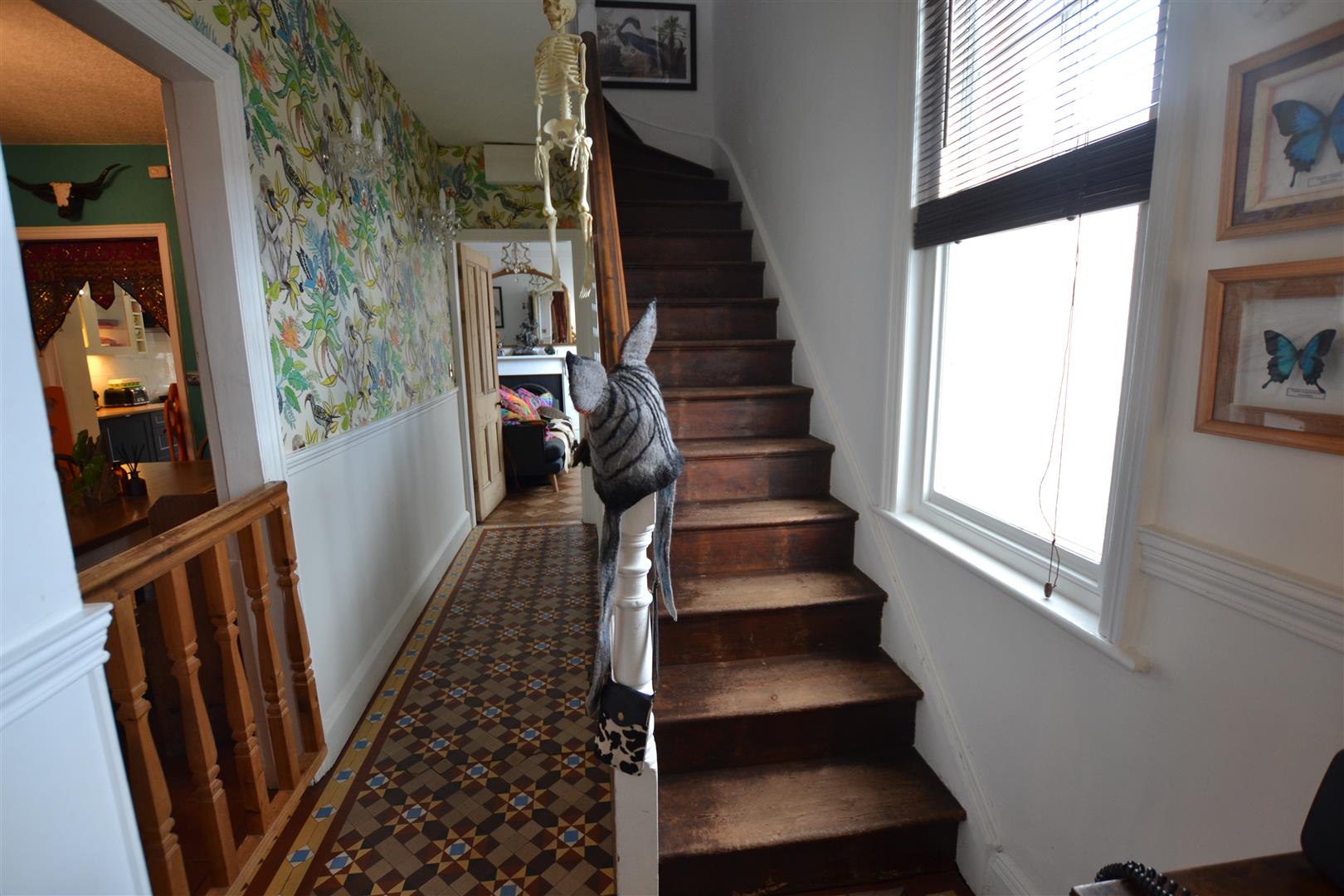 The living room has a delightful bay window to the front, an original working fireplace with alcoves to either side of the chimney breast, a picture rail and exposed floorboards.