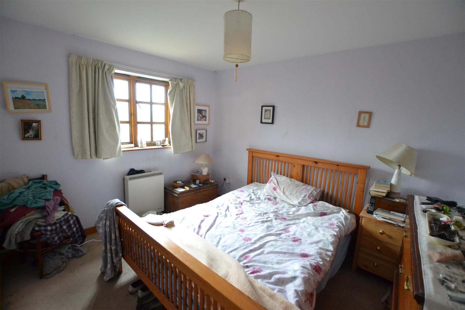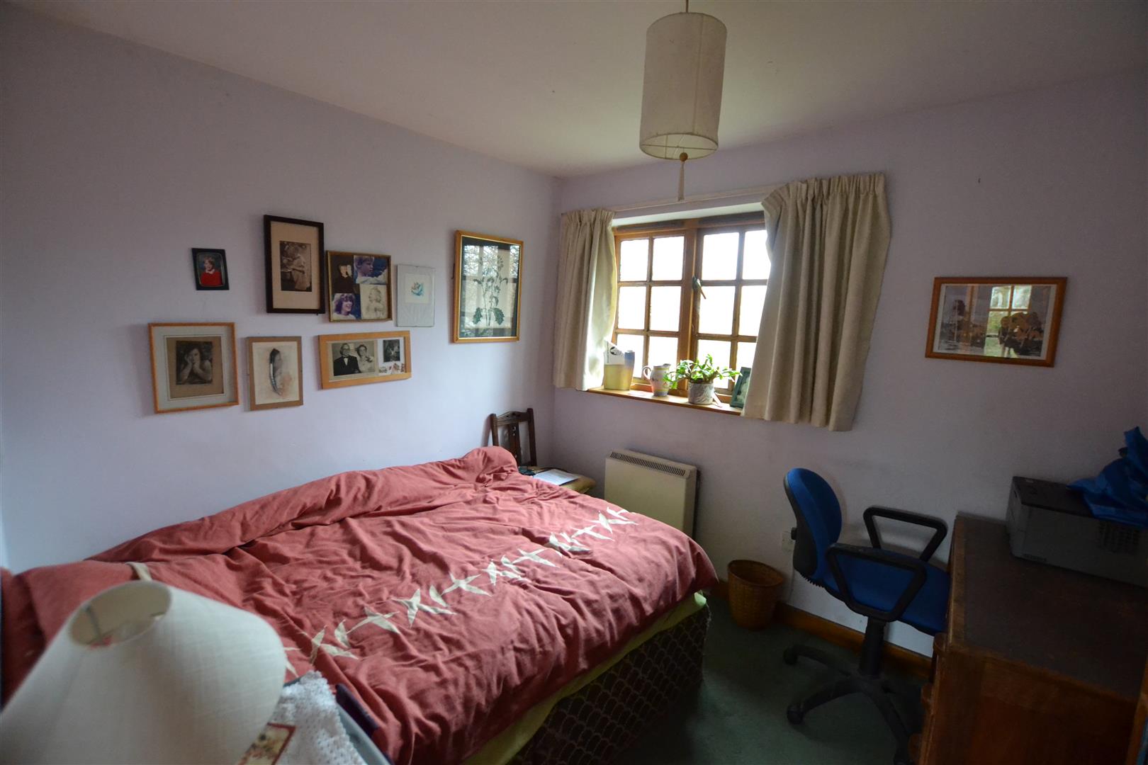 Bedroom one has a window to rear with rural views, ceiling light and a night storage heater.