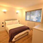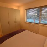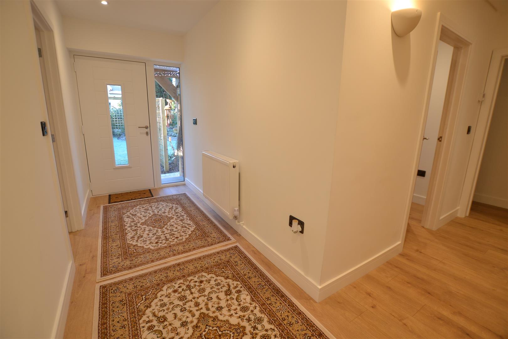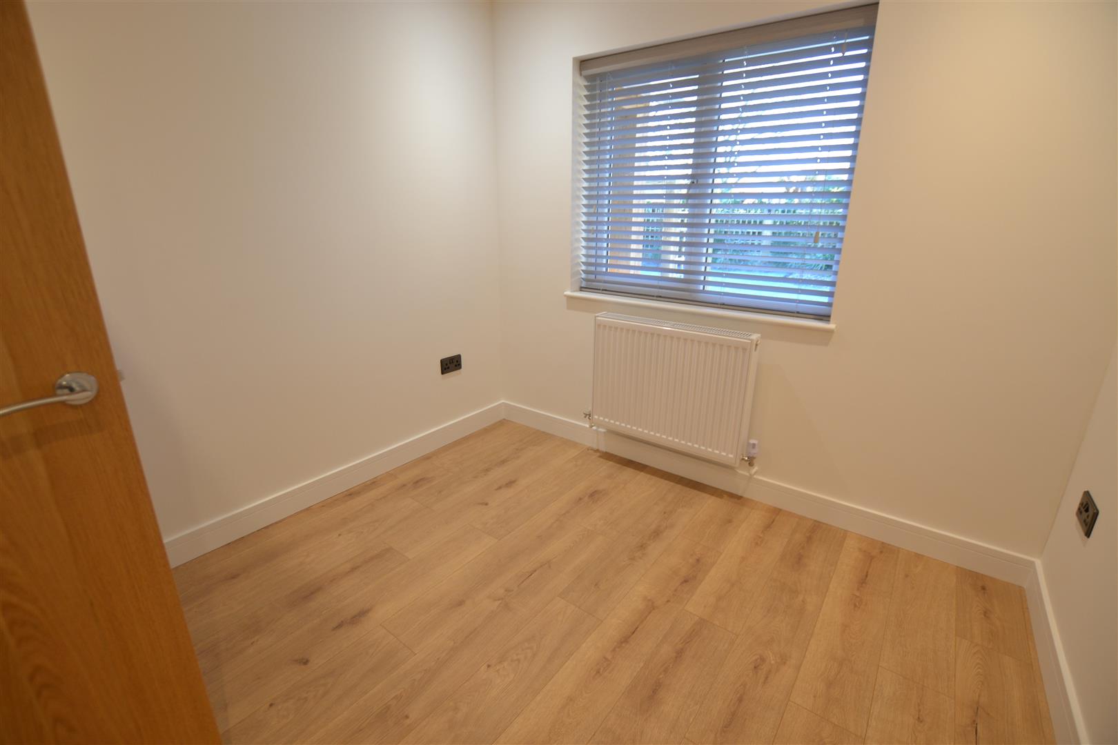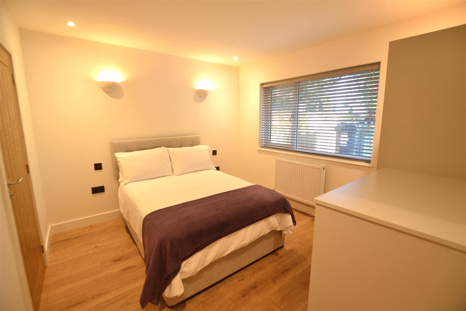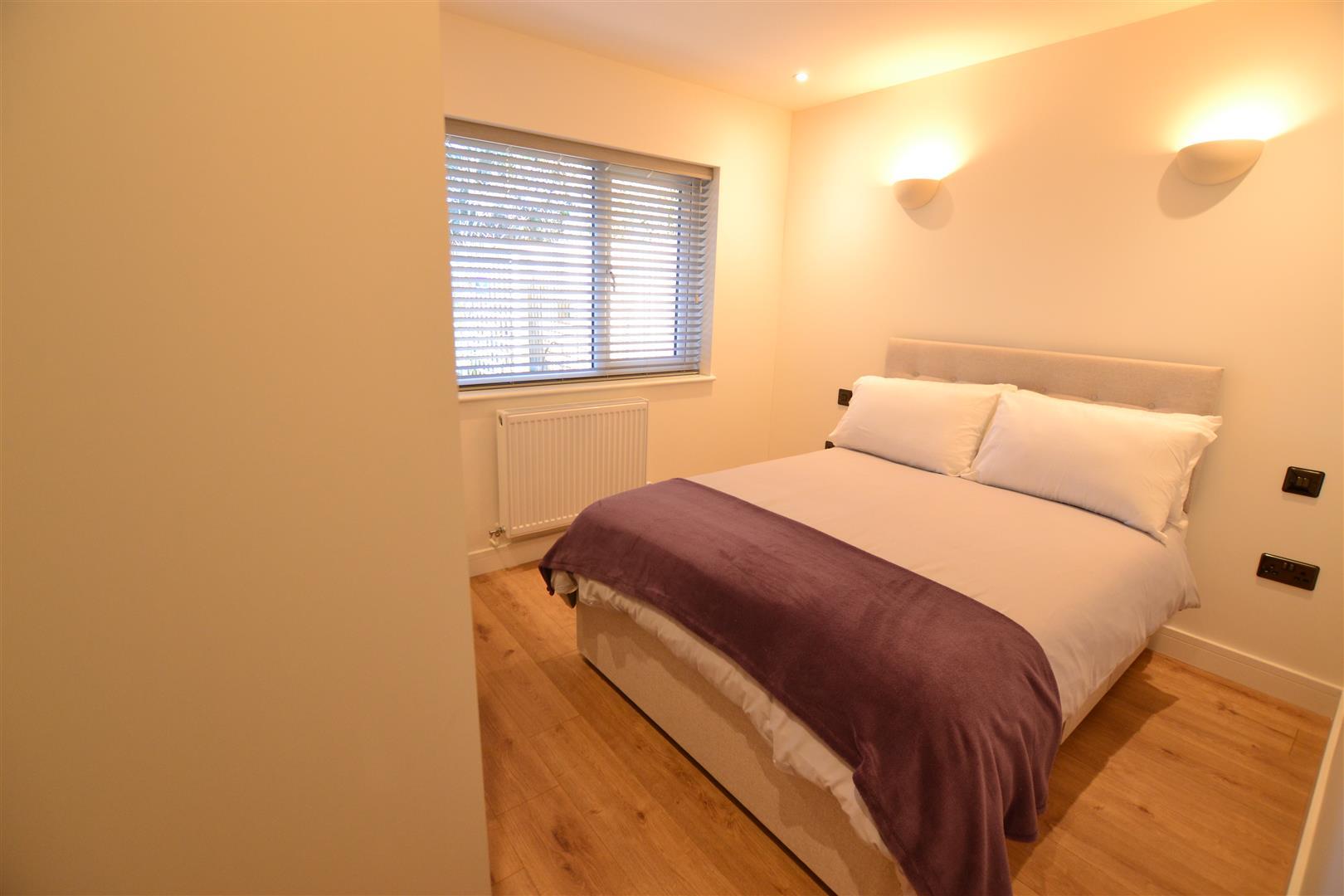 Bedroom two has a built-in wardrobe, window to front, panelled radiator, wall lighting and ceiling downlighters.