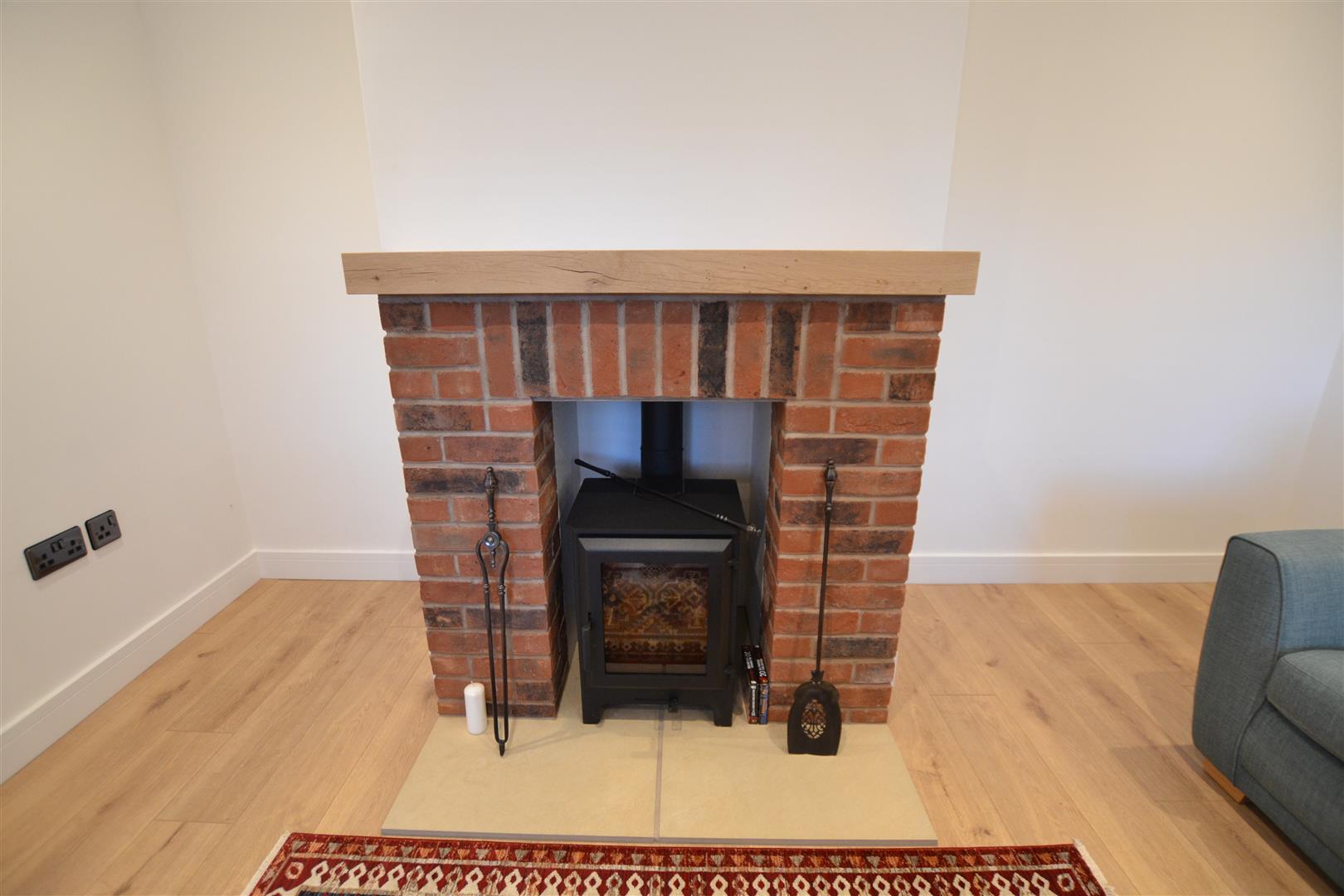 The lounge has a feature brick fireplace, heavy timber, lintel over and inset is a wood burning stove. There are ceiling downlighters, wall lighting, internet connection, smoke alarm and 2 windows both to front and a panelled radiator under.