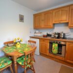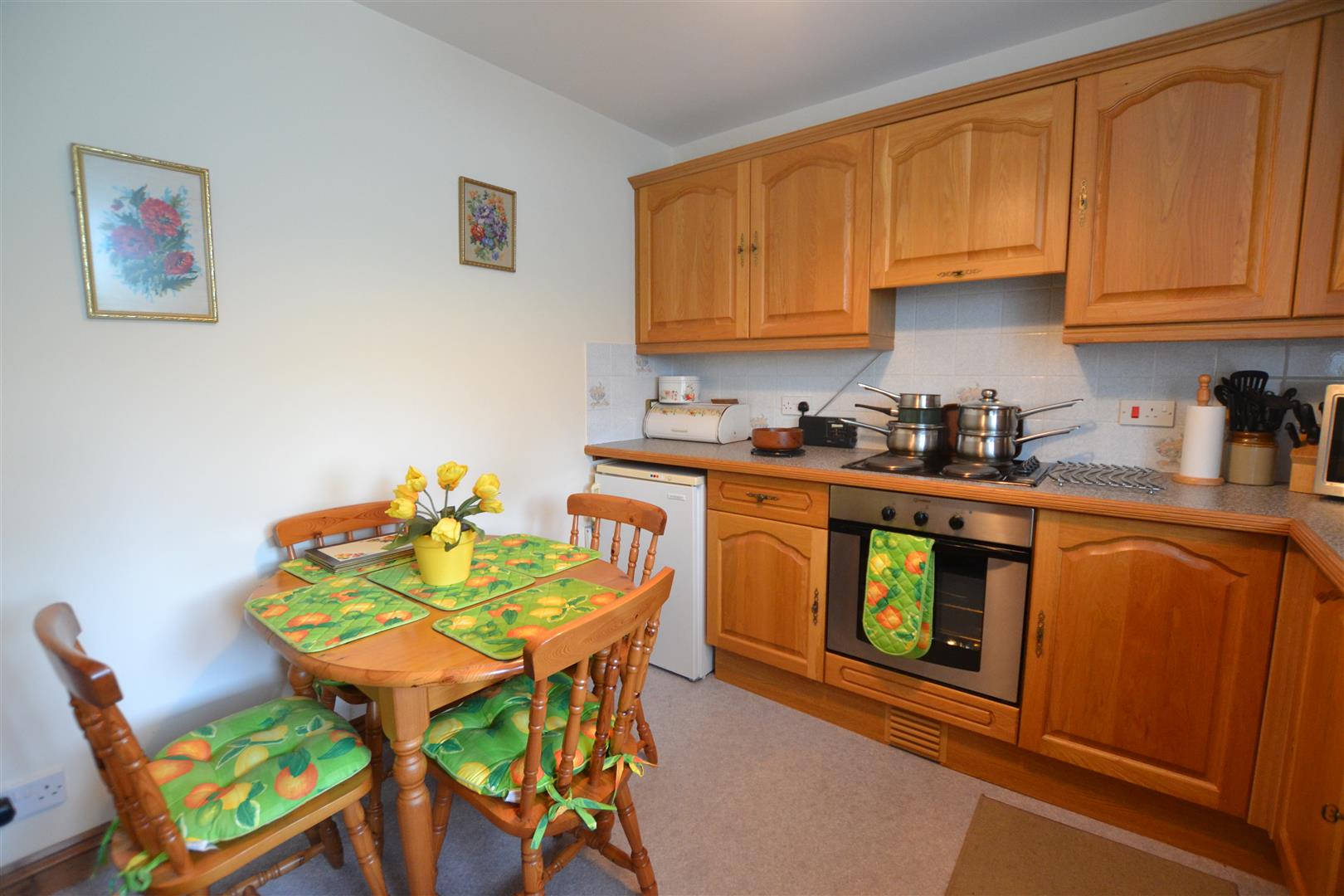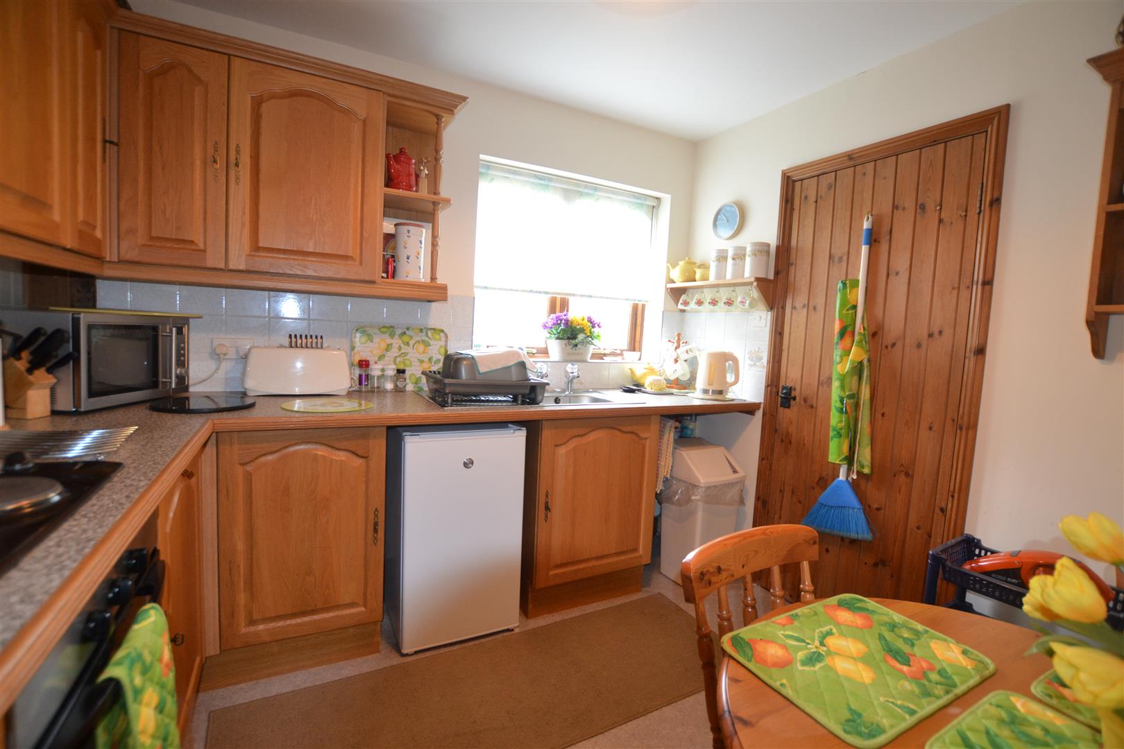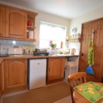 The kitchen/breakfast room has an inset, stainless steel, single drainer sink unit and working surfaces with base units under of cupboards and drawers. There is an inset Ariston electric hob, fan assisted electric oven with grill under and an extractor hood with light over. There is space and plumbing for a washing machine, room for a fridge and freezer, tiled splashbacks including a window sill with a window overlooking pretty gardens to front. The Kitchen/dining room has matching eye level cupboards, night storage heater, lighting and room for a breakfast table and chairs.