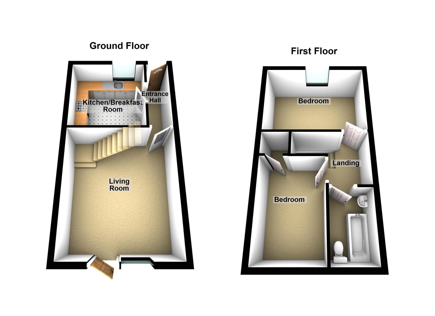 From the sitting room a staircase turns and rises up to the first floor landing having lighting, inspection hatch to the partly boarded roof space above and doors off to bedrooms.