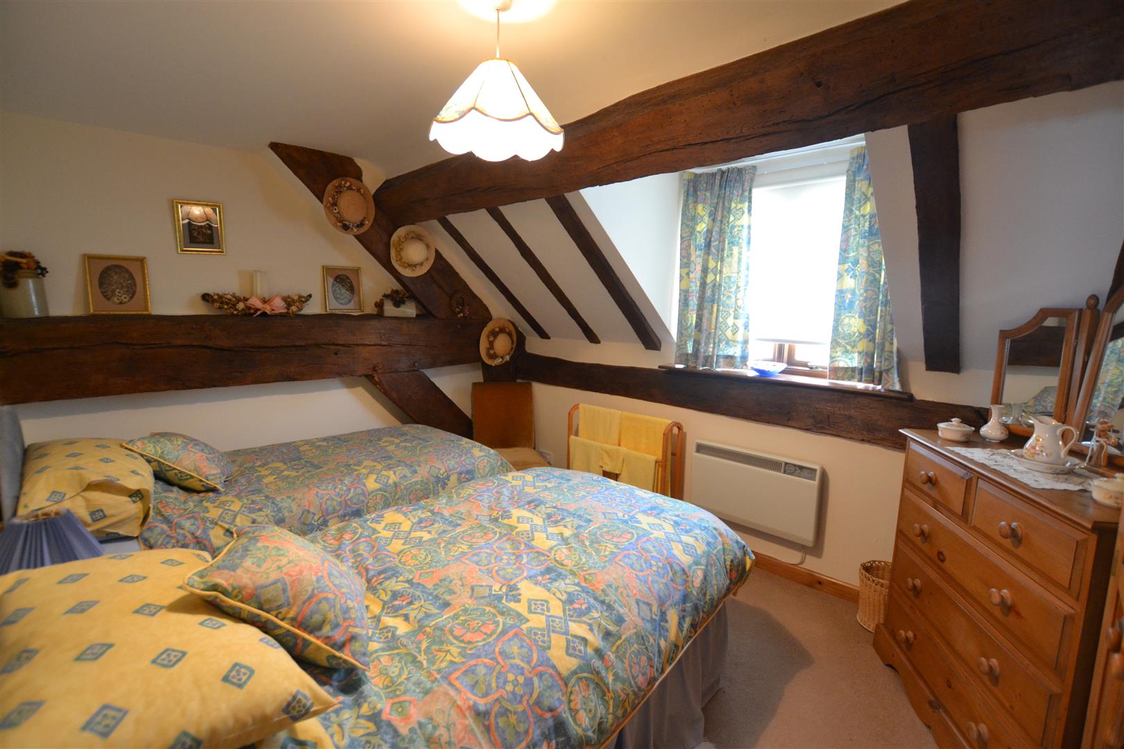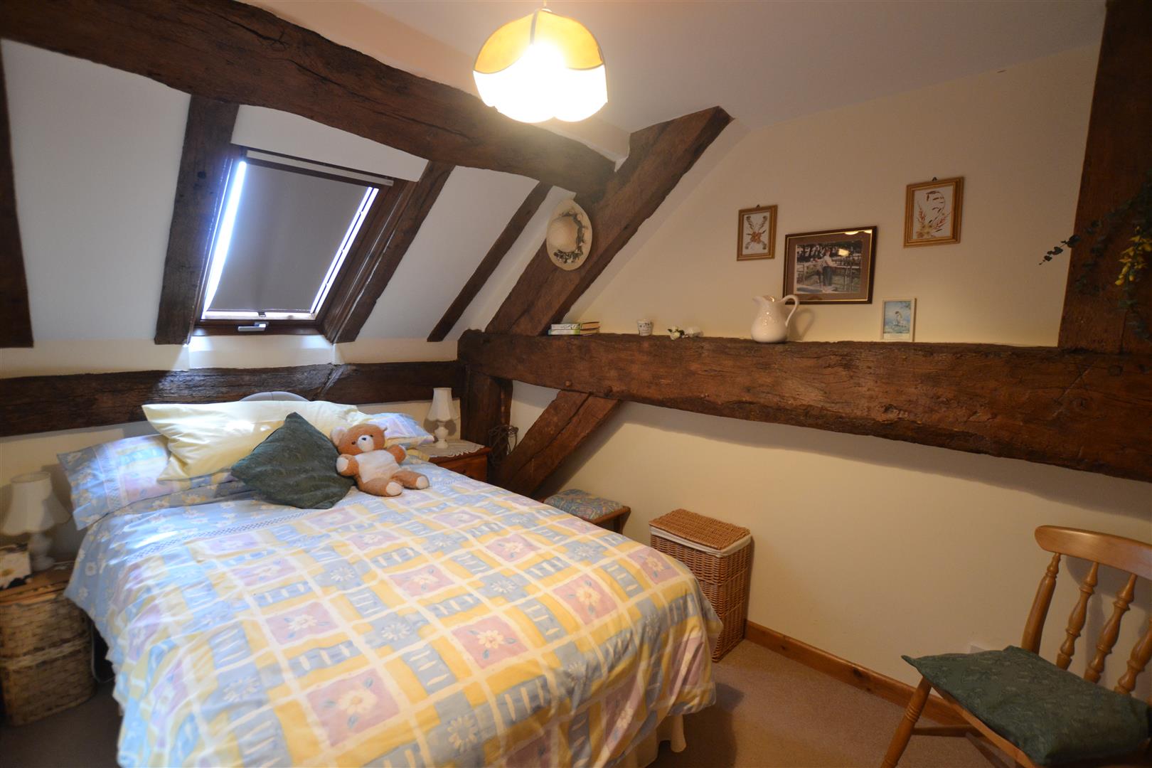 Bedroom one has some lovely exposed wall and ceiling timbers, window to front, electric panel convector heater and lighting.