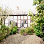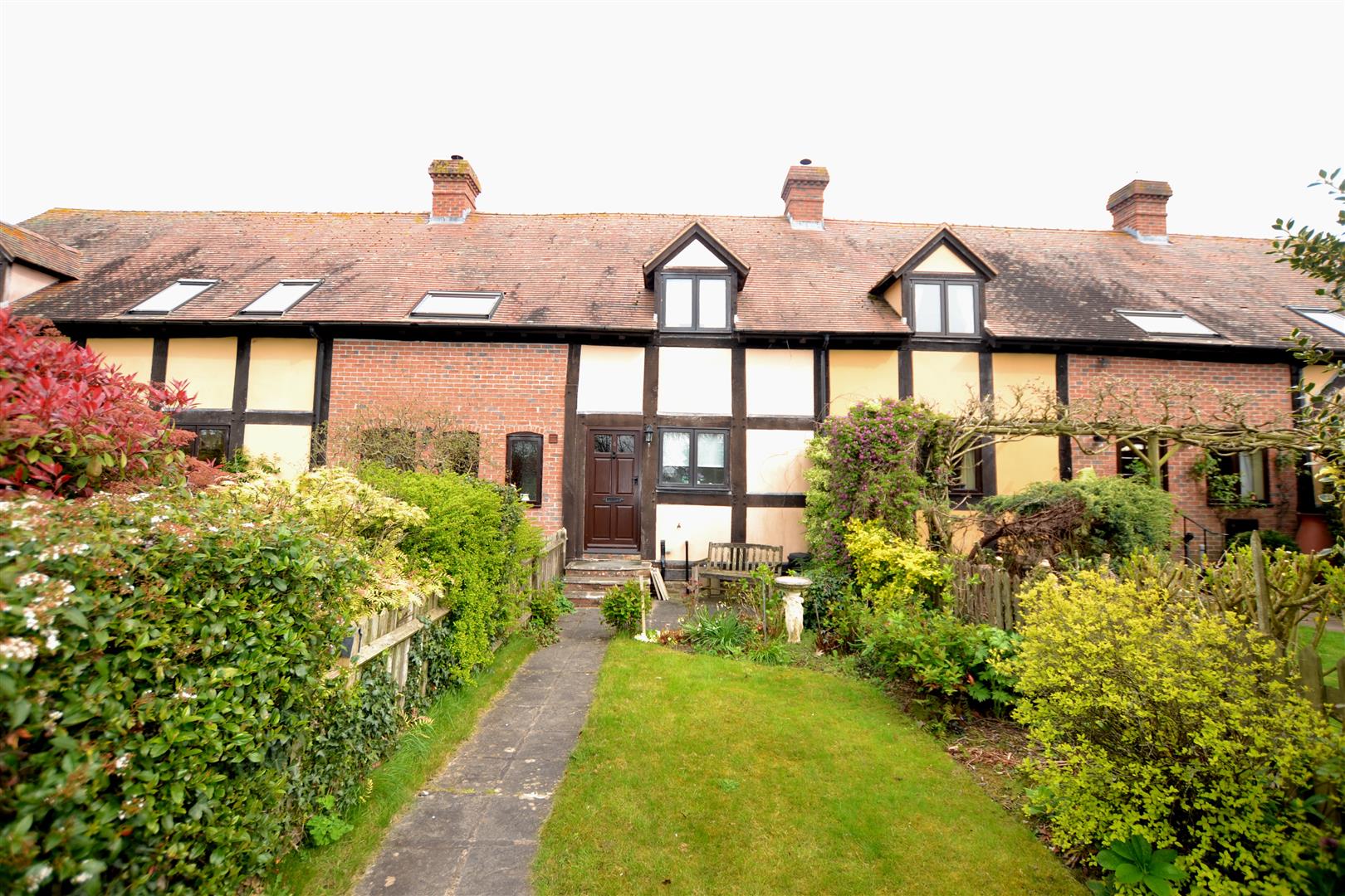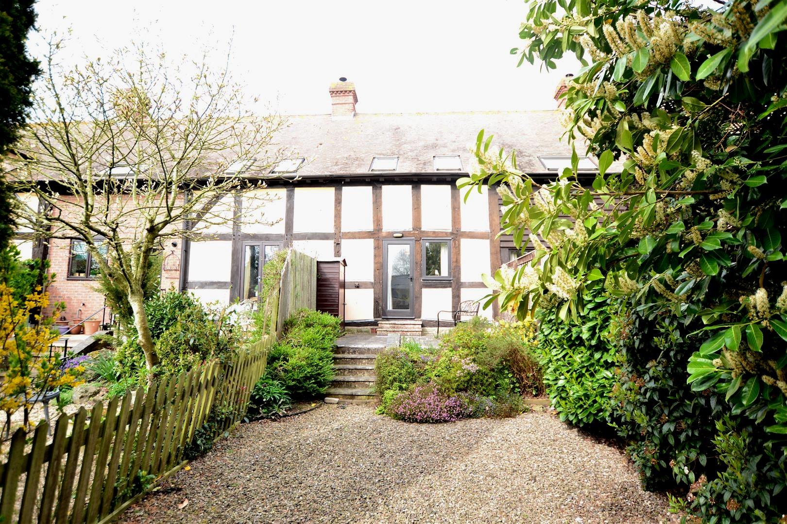 The property is a terraced half timbered cottage under a clay tiled roof.