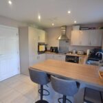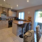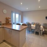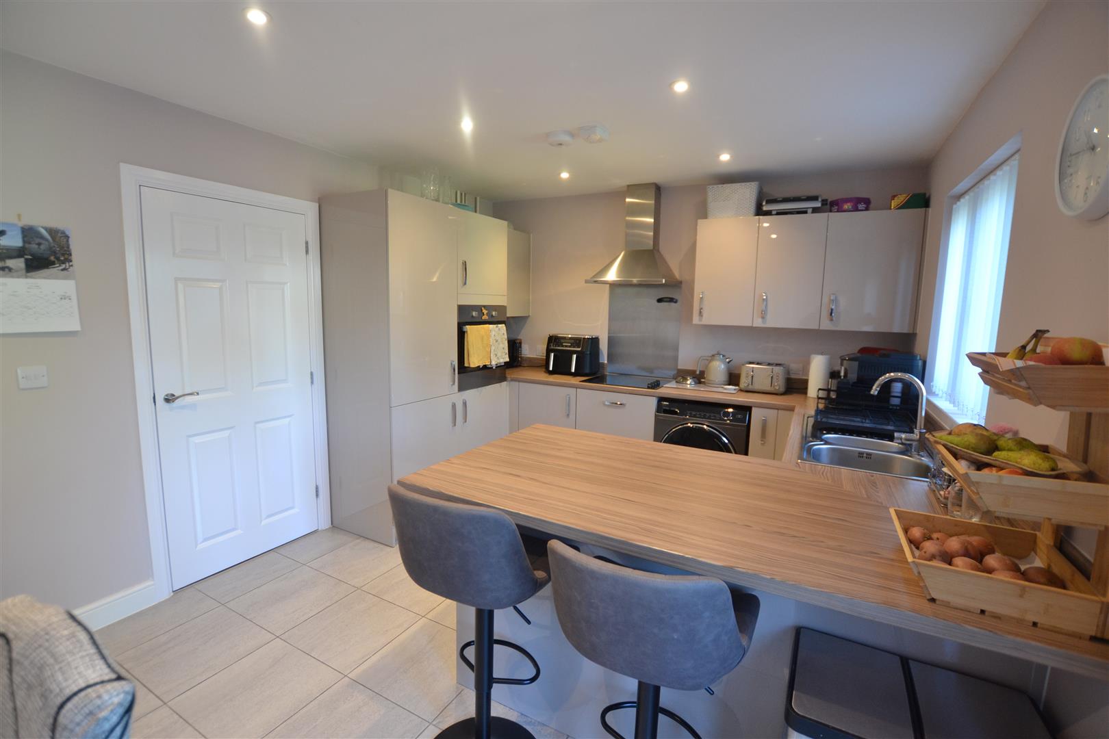 From the reception hall a door opens into the kitchen/dining room. The smart kitchen/dining room has units to include an inset one and a half, single drainer sink unit, working surfaces and base units under of cupboards and drawers. There is a 4 ring electric ceramic hob, extractor hood with light over, a fan assisted electric oven with grill in a tall housing unit and cupboard space over and under. There is also a built-in fridge and freezer, integral dishwasher, space and plumbing for an automatic washing machine, eye-level cupboards and a wall mounted idea gas fired boiler heating hot water and central heating system. There is a breakfast bar, ceiling downlighters and a window to rear.