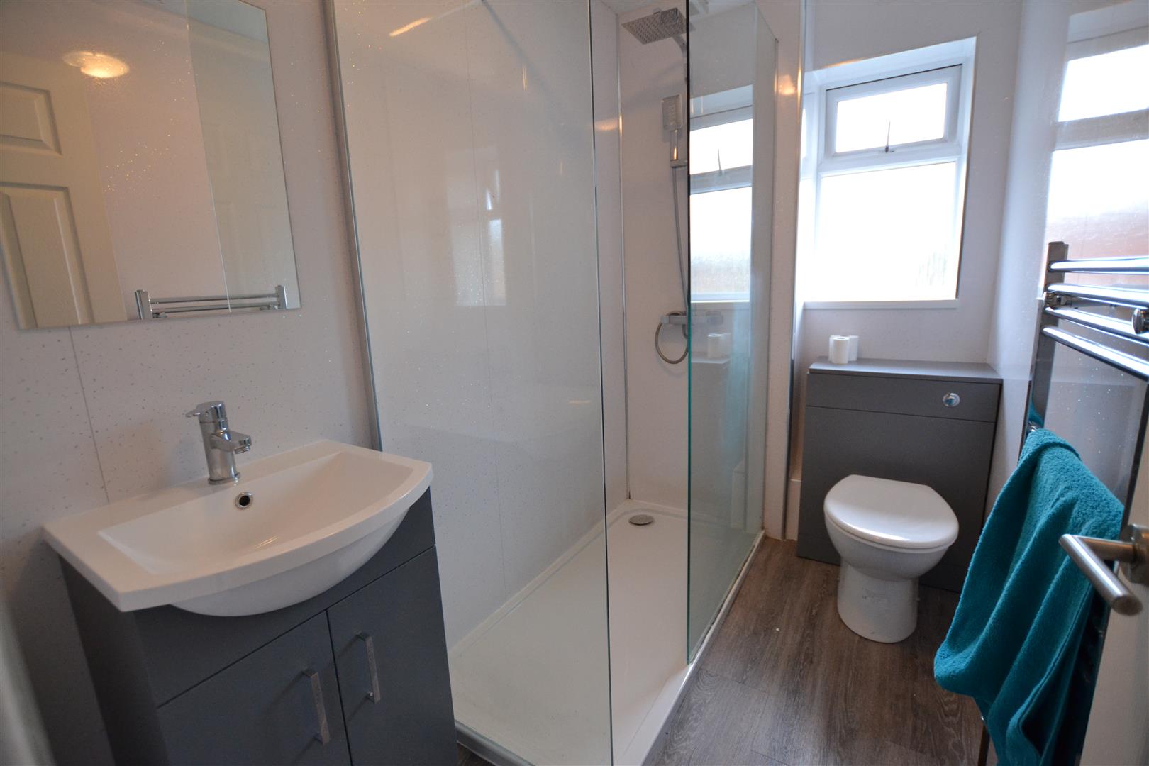 From the landing a door leads into a modern fitted shower room having a large walk-in shower with a mains shower over, wet walling to splashbacks, wash hand basin with vanity unit under and a W.C. The shower room has an extractor fan, frosted UPVC double glazed window to front and a shaver socket.