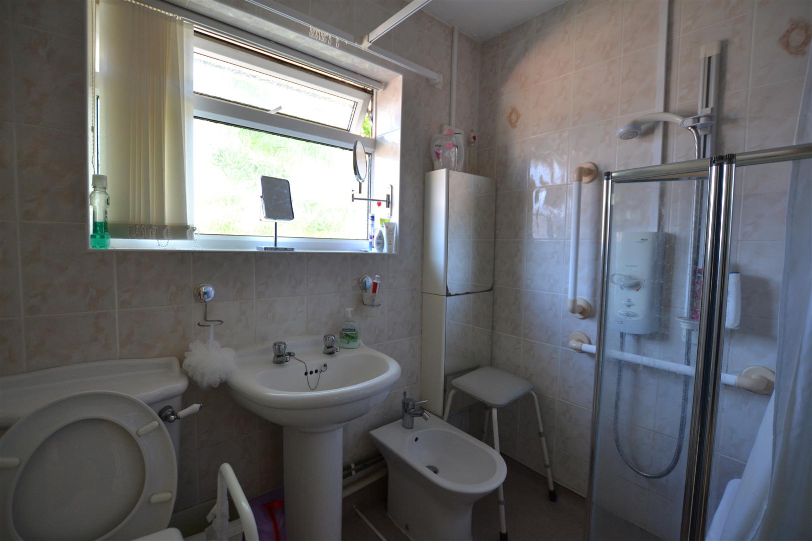 From the landing a door opens into the shower room having an easy walk-in shower, bidet, low flush W.C, wash hand basin, ceramic tiling to ceiling height throughout, including a window sill with an opaque double glazed window to side. There is also a vertical heated towel rail/radiator and a panelled radiator.