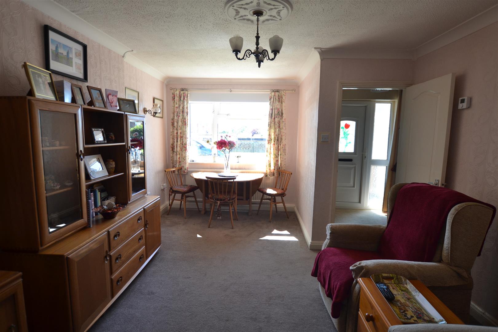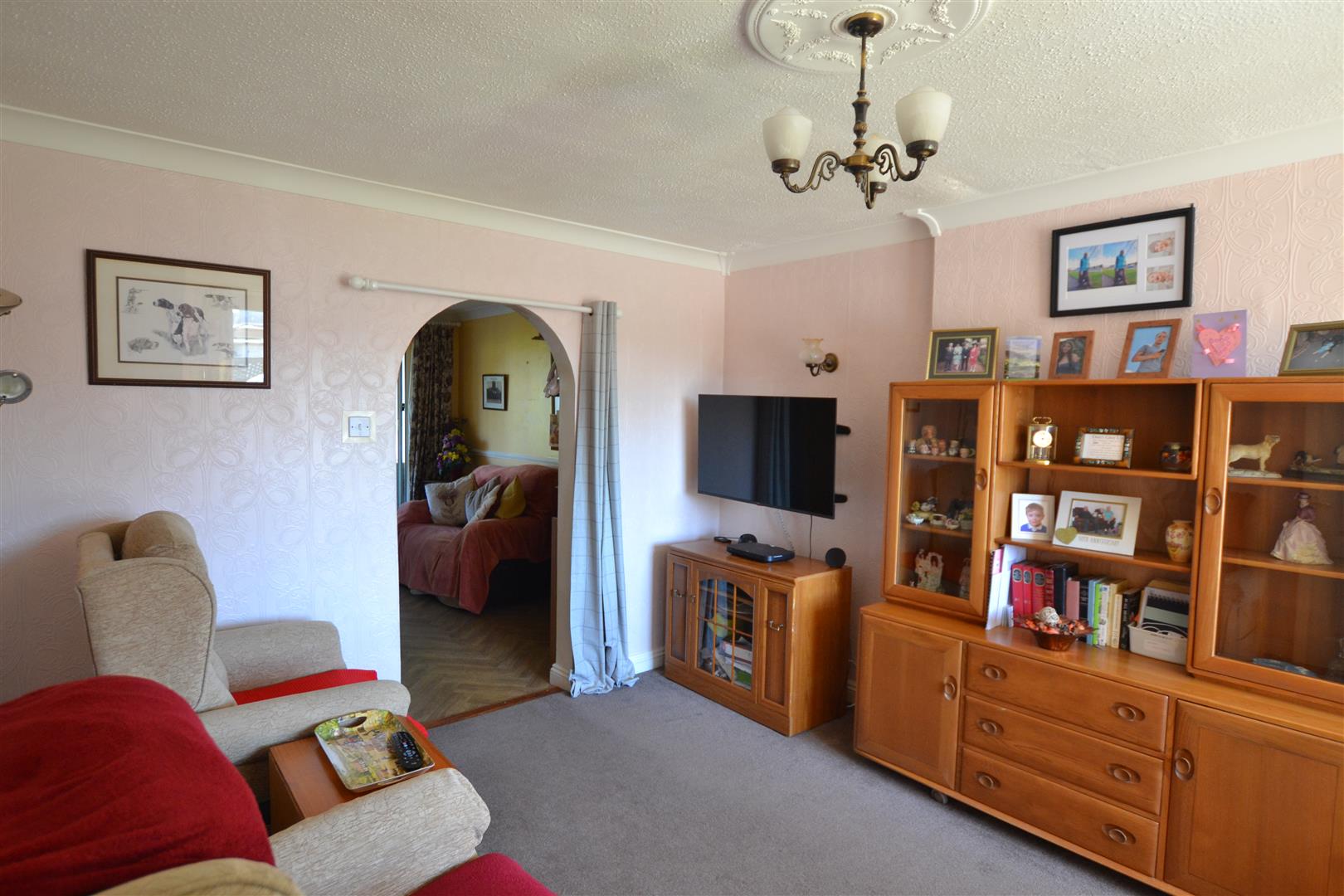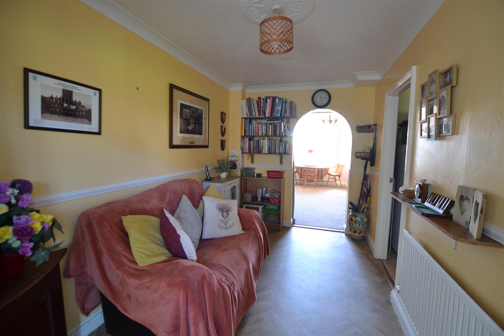 The lounge has a window to front, panelled radiator, lighting, power, wall lighting and an archway leading through into the dining room.