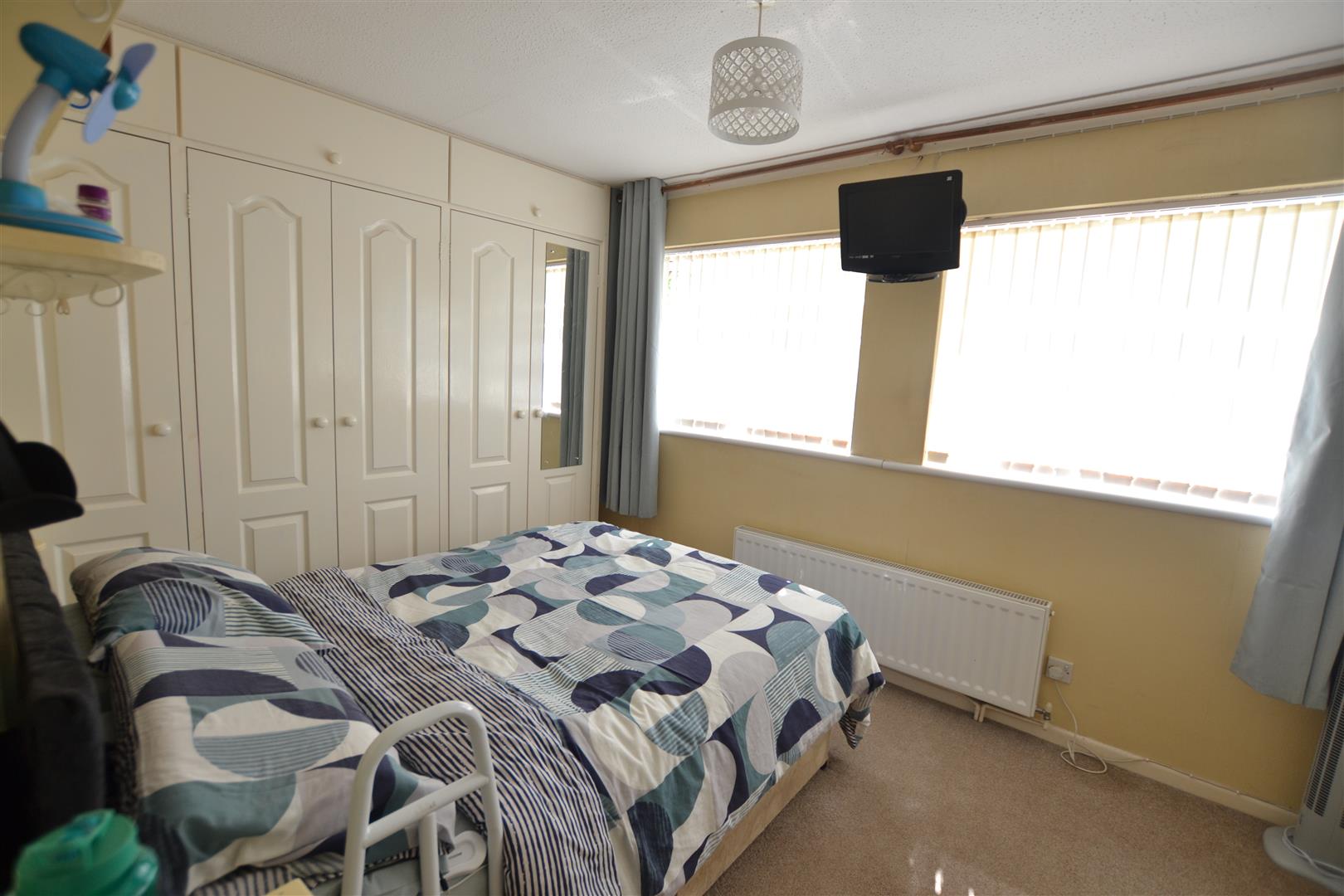 Bedroom one has 2 windows to front with pleasant outlook, panelled radiator, lighting and built-in floor to ceiling wardrobes on 2 walls.